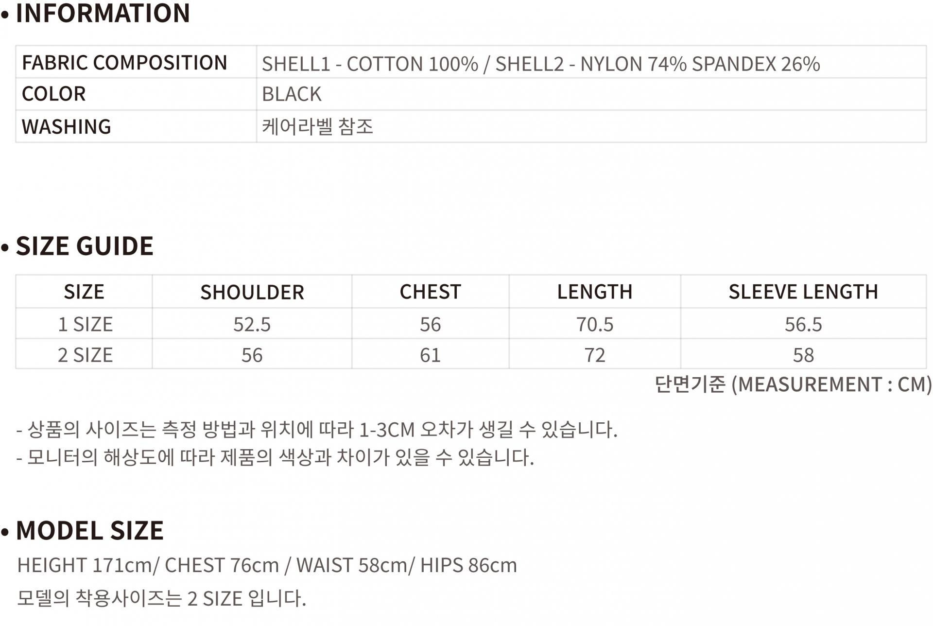 롱 슬리브 부분의 메쉬 소재사용으로 한여름 중에도 착용가능합니다.