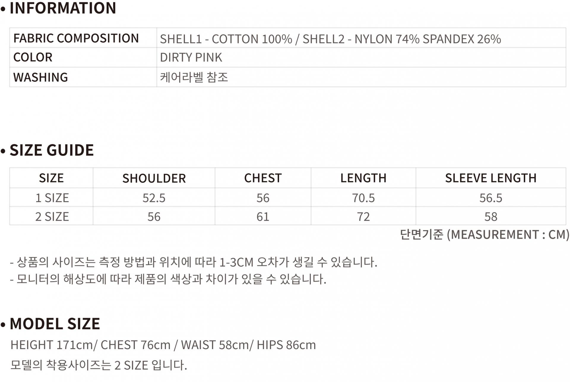 롱 슬리브 부분의 메쉬 소재사용으로 한여름 중에도 착용가능합니다.