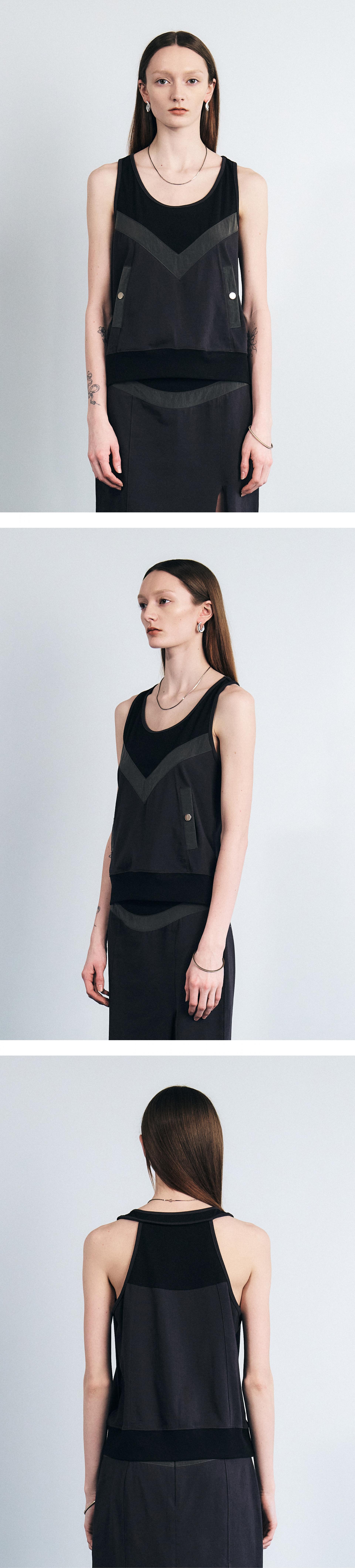 BLOCKED JERSEY SELEEVELESS TOP (CHARCOAL)