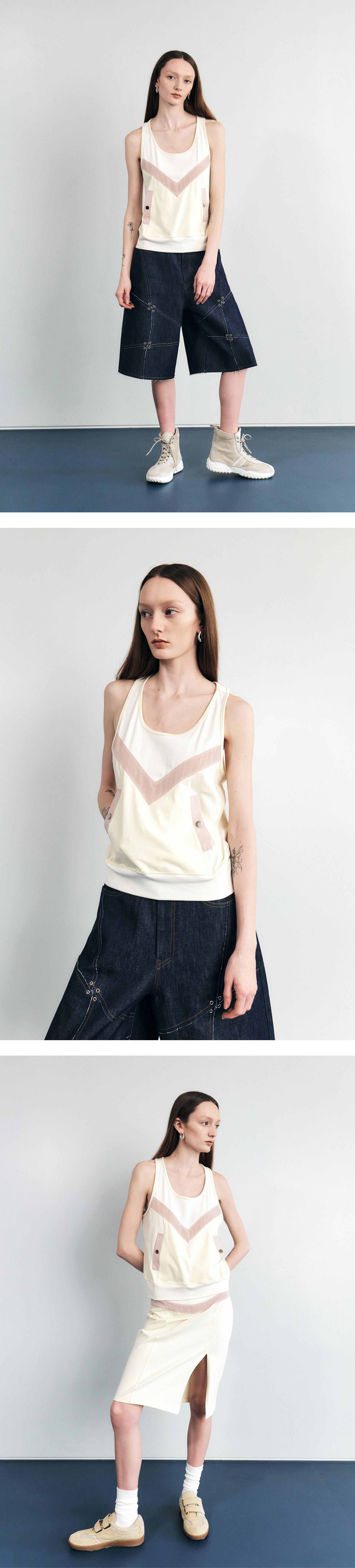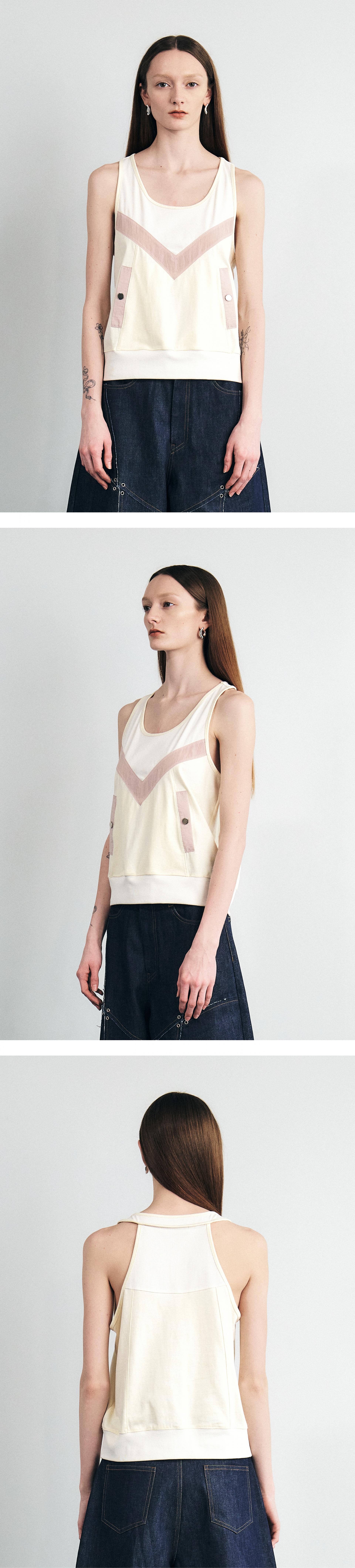BLOCKED JERSEY SELEEVELESS TOP (IVORY)