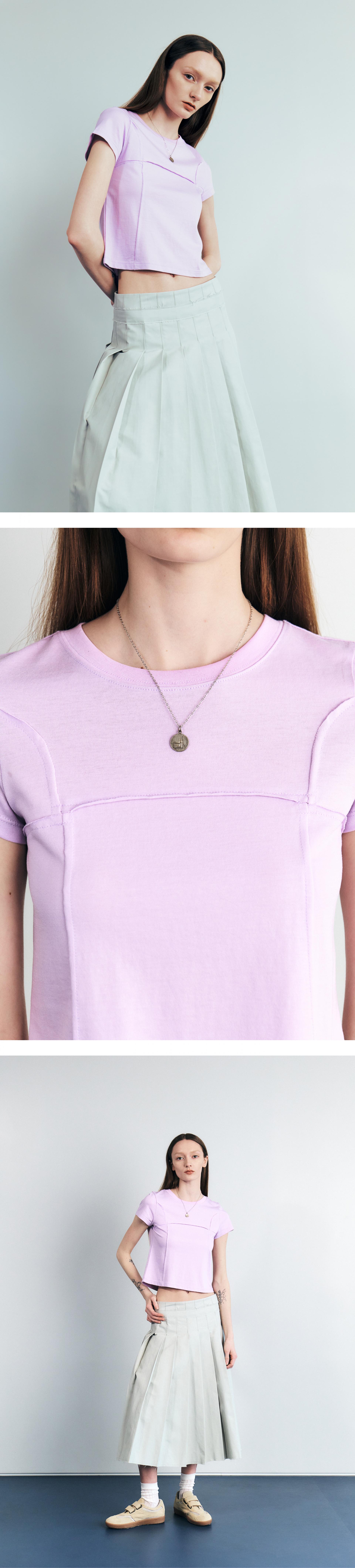 SIGNATURE RAW CUT CROPPED HALF SLEEVE TOP (LAVENDER)