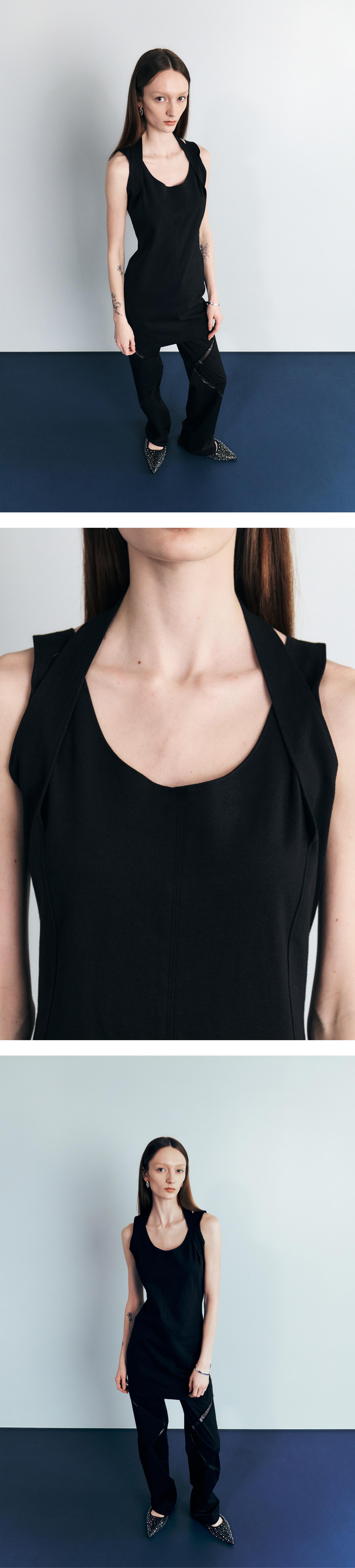 TWISTED NECK SLEEVELESS MINI DRESS (BLACK)
