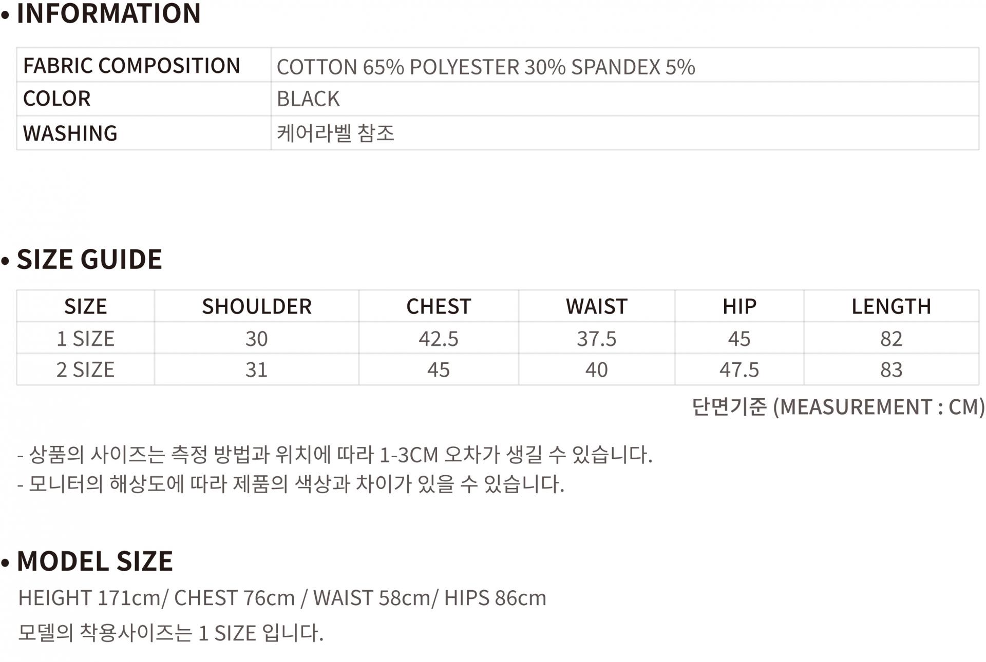 스판덱스가 포함된 면 혼방원단으로 부드러운 터치감과 슬림한 핏에도 편안한 착용감으로 보여줍니다