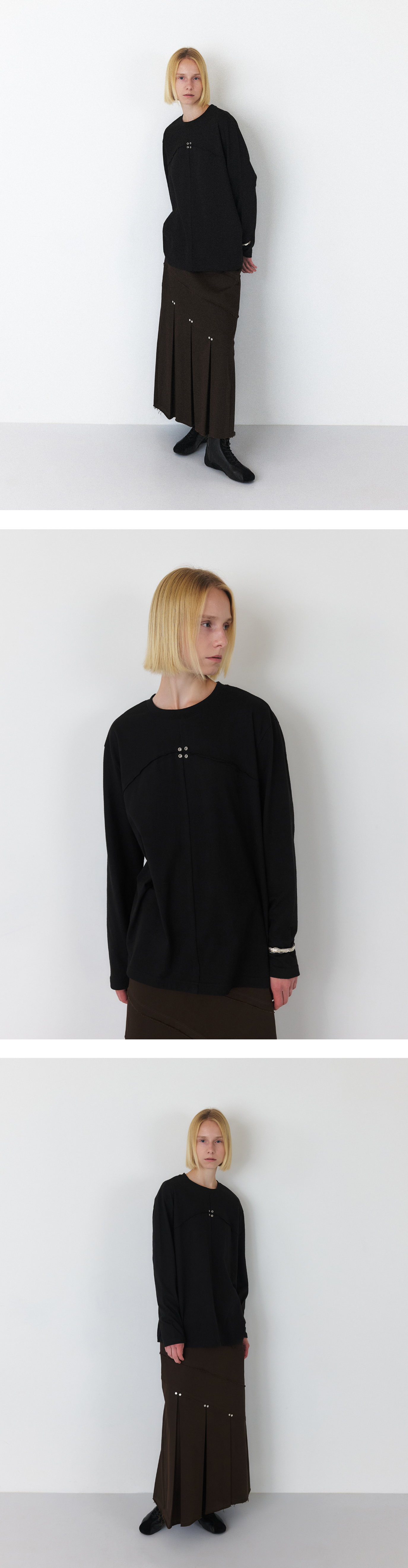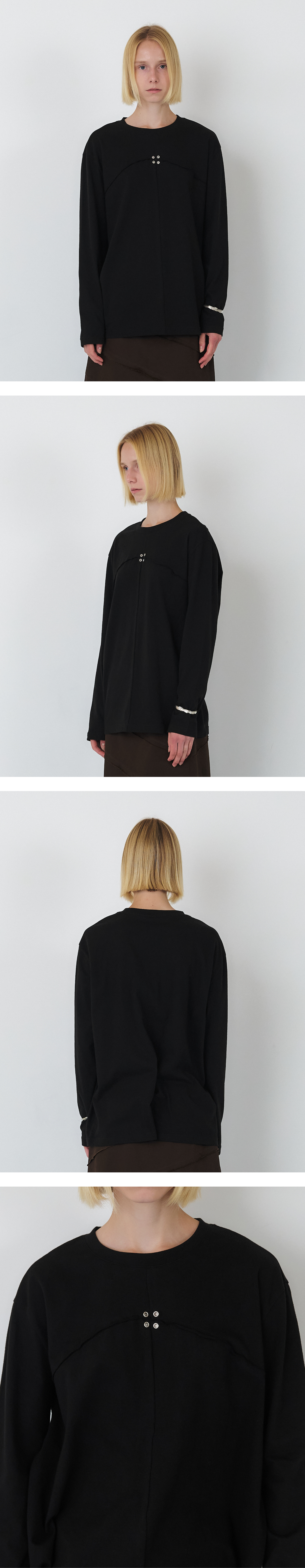 [UNISEX] SIGNATURE RAW CUT EYELET LONG SLEEVE TOP (BLACK)
