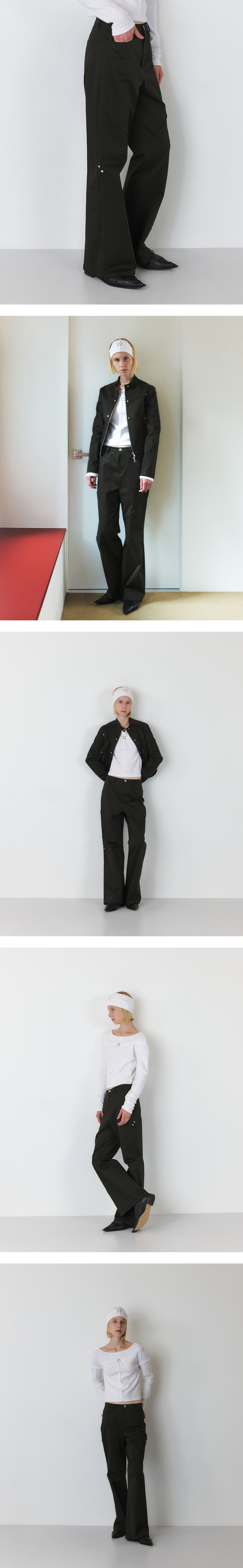 STUD RAW CUT LOOSE BOOTS CUT PANTS (DARK KHAKI)