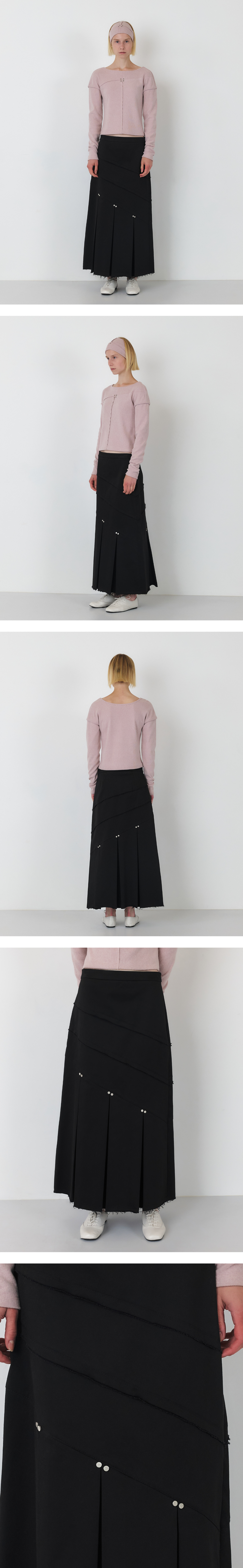 STUD HALF PLEATS LONG SKIRT (BLACK)