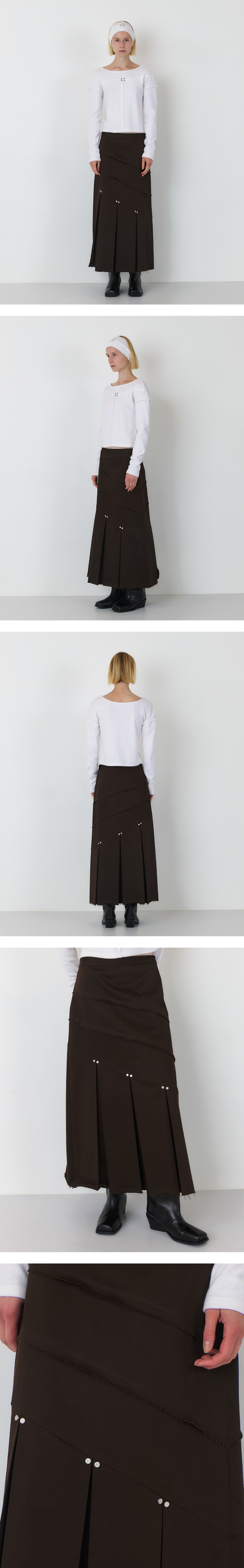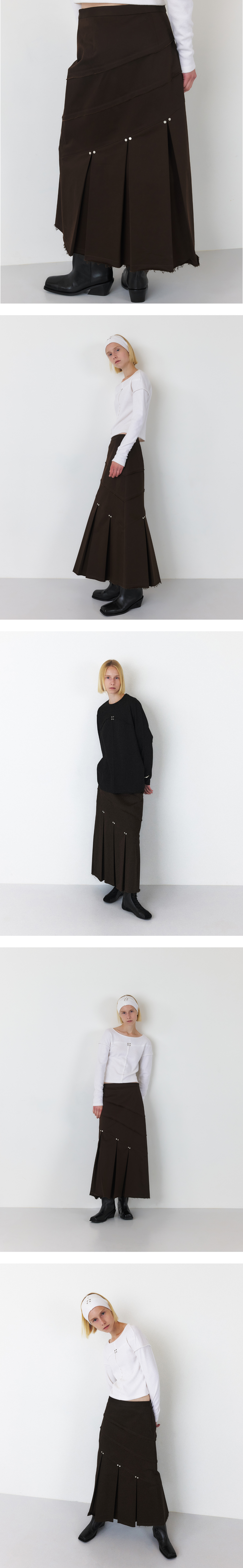 STUD HALF PLEATS LONG SKIRT (DARK WALNUT)