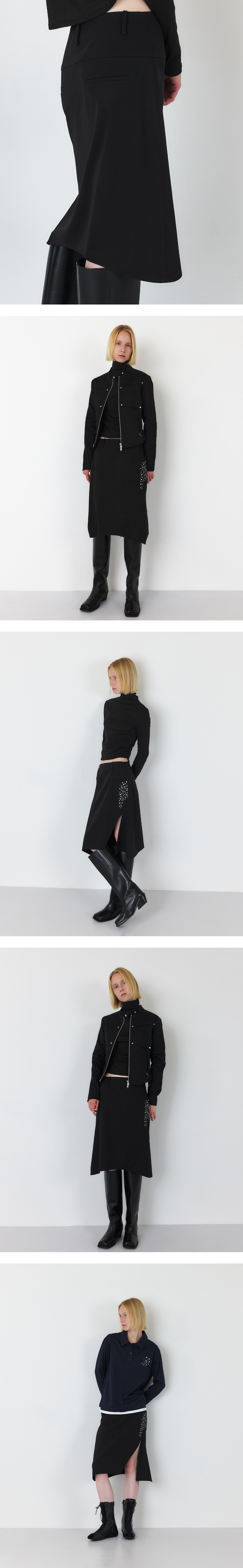 TWINKLE DIAGONAL CONSEAL ZIPPER MIDI SKIRT (BLACK)