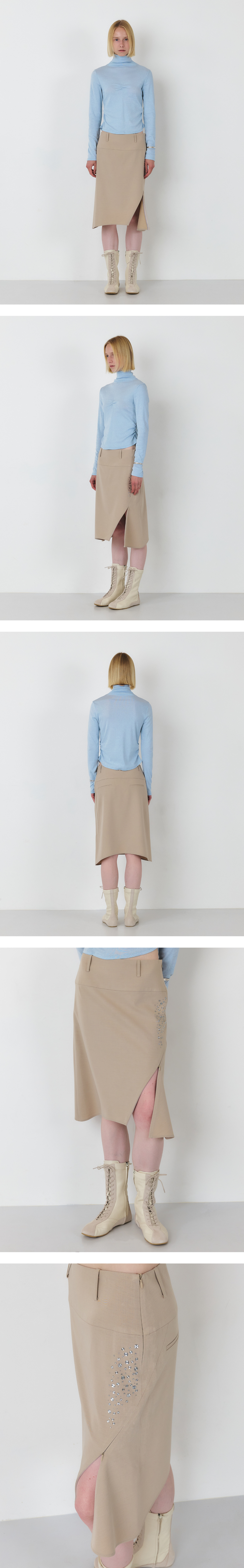 TWINKLE DIAGONAL CONSEAL ZIPPER MIDI SKIRT (BEIGE)